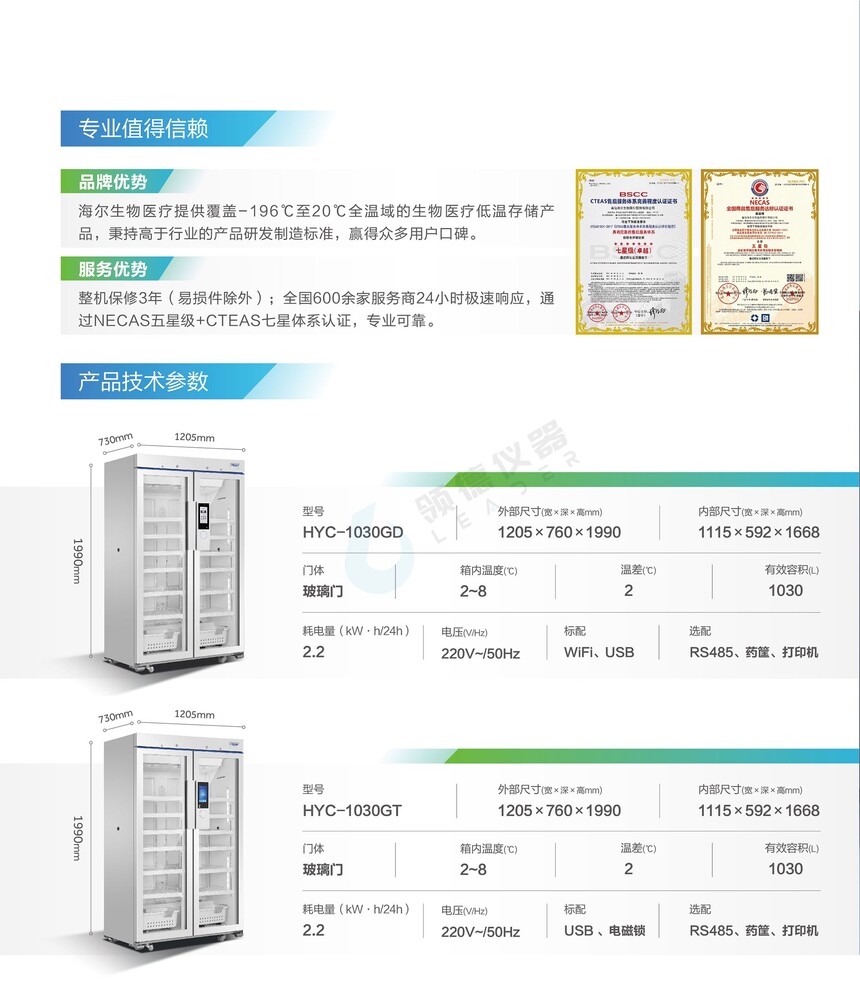 海爾2-8度醫用冷藏箱 HYC-1030GD