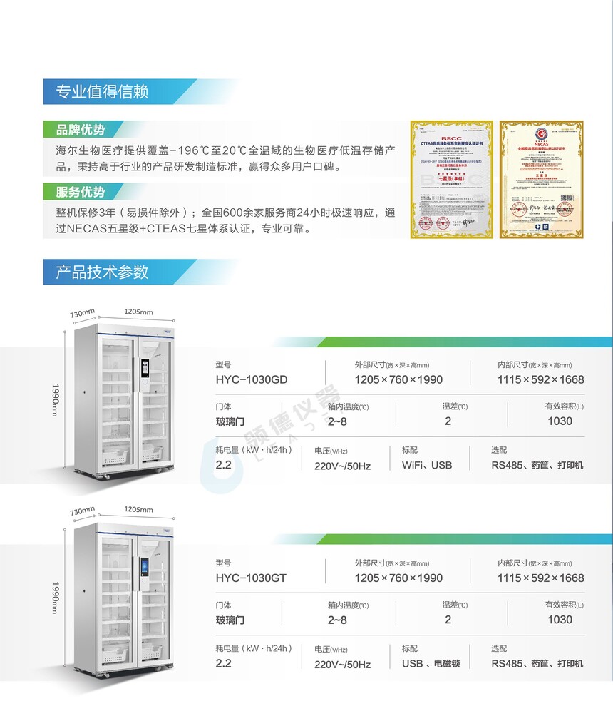 海爾2-8度醫用冷藏箱 HYC-1030GT